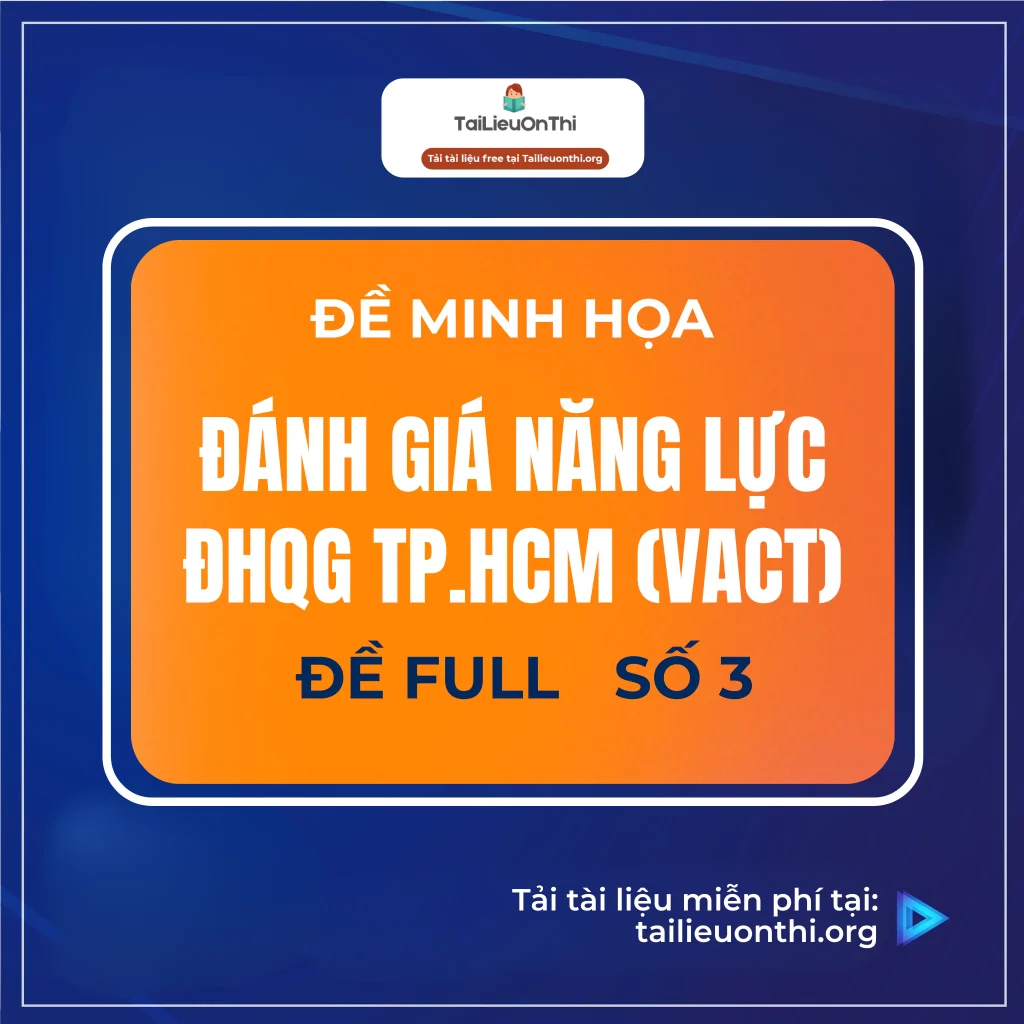 Nhằm hỗ trợ các bạn thí sinh trong quá trình ôn luyện, chúng tôi chia sẻ Đề minh họa đánh giá năng lực TP.HCM 2025 (đề full) số 3, kèm theo lời giải chi tiết giúp bạn dễ dàng tham khảo và rèn luyện cho kỳ thi Đánh giá năng lực V-ACT sắp tới. Ngoài ra, các bạn có thể tham khảo toàn bộ tài liệu ĐGNL HCM ở web nhé.