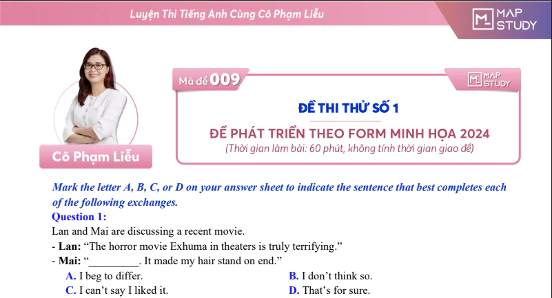 [2k6] Bộ 15 Đề Phát Triển Tiếng Anh Từ Cấu Trúc Đề Minh Họa – Cô Phạm Liễu