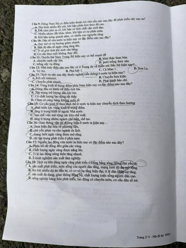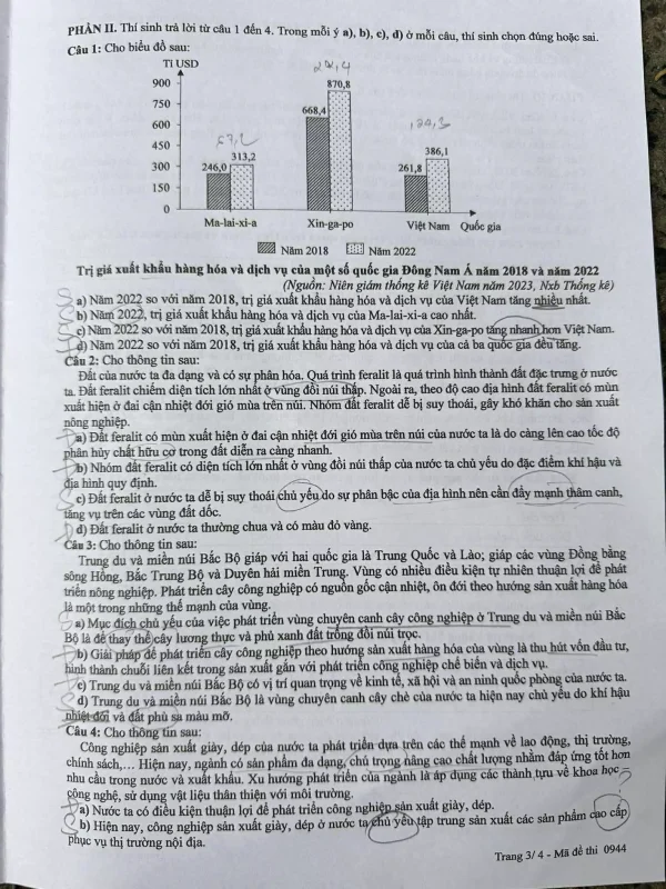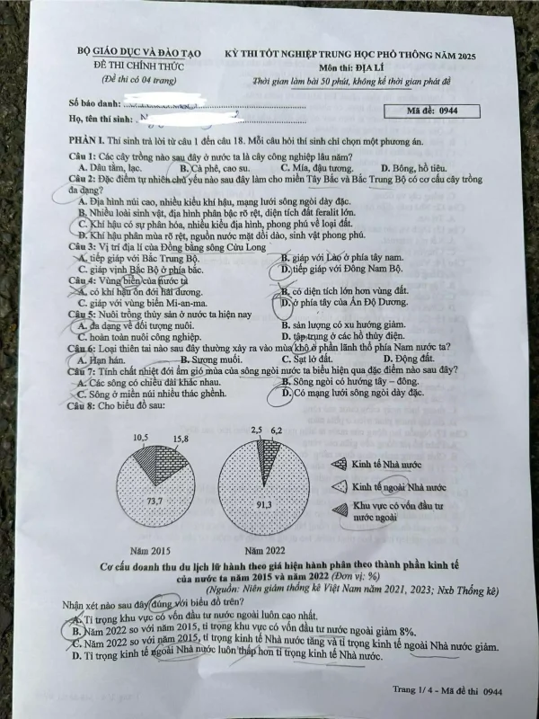 Đáp án đề thi môn Địa lý tốt nghiệp THPT 2025 (đề chính thức)