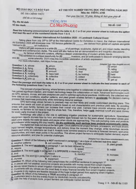 Đề thi môn Tiếng Anh tốt nghiệp THPT 2025