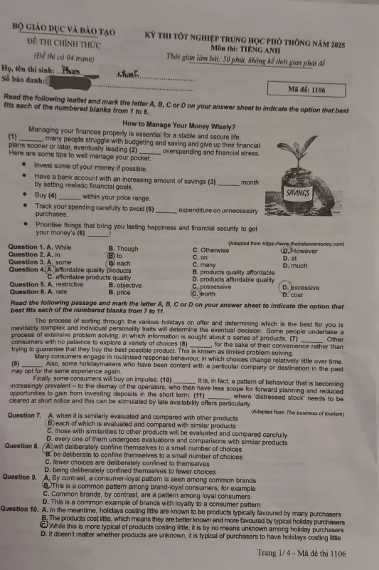 Đáp án đề thi môn Tiếng Anh tốt nghiệp THPT 2025 (đề chính thức) được cập nhật nhanh và chính xác nhất tại Tailieuonthi.org.
