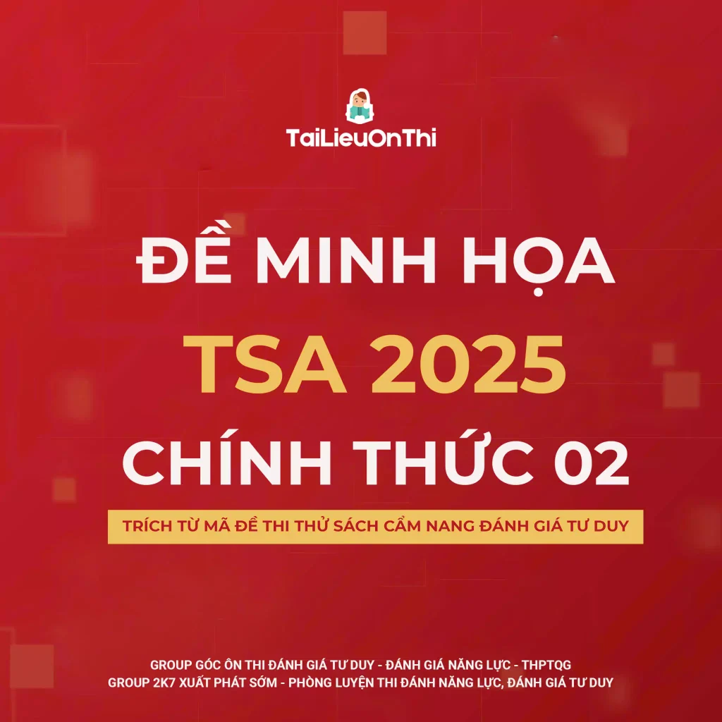 Đề minh họa đánh giá tư duy TSA 2025 chính thức (mã đề 01 sách cẩm nang): https://tailieuonthi.org/de-minh-hoa-danh-gia-tu-duy-tsa-2025-chinh-thuc-ma-de-01-sach-cam-nang/