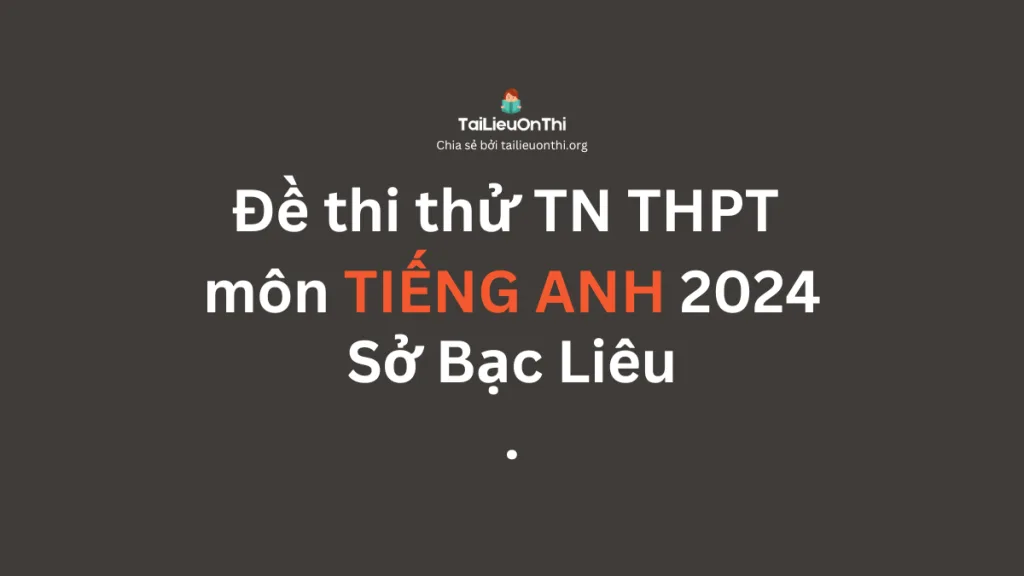 Tài liệu ôn thi (tailieuonthi.org) chia sẻ tới các bạn học sinh PDF Đề thi thử TN THPT môn Tiếng Anh 2024 – Sở Bạc Liêu và đáp án miễn phí. Đây sẽ là tài liệu cực hay giúp các bạn ôn thi TN THPT môn Tiếng Anh cũng như là ôn thi Đánh giá năng lực.