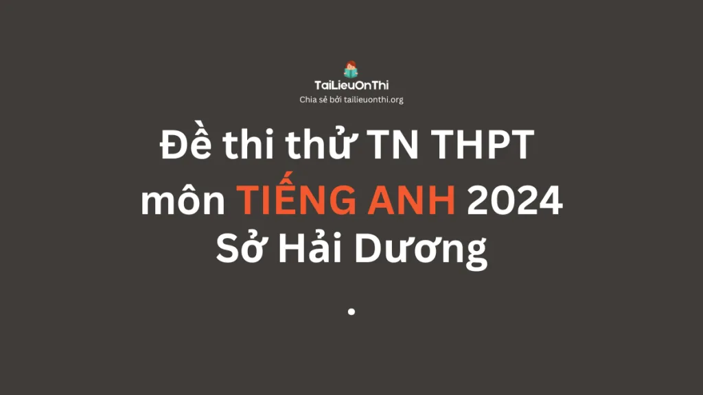 Tài liệu ôn thi (tailieuonthi.org) chia sẻ tới các bạn học sinh PDF Đề thi thử TN THPT môn Tiếng Anh 2024 – Sở Hải Dương và đáp án miễn phí. Đây sẽ là tài liệu cực hay giúp các bạn ôn thi TN THPT môn Tiếng Anh cũng như là ôn thi Đánh giá năng lực.