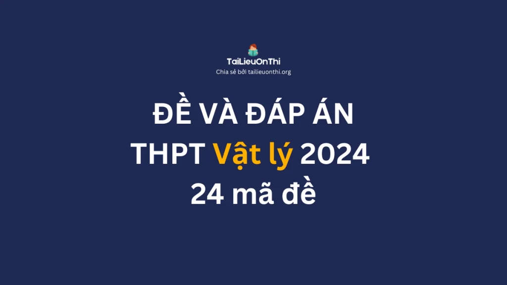 Đề thi và đáp án đề thi tốt nghiệp THPT môn Vật lý 2024 của 24 mã đề được Tài liệu ôn thi (tailieuonthi.org) cập nhật đầy đủ dưới đây.