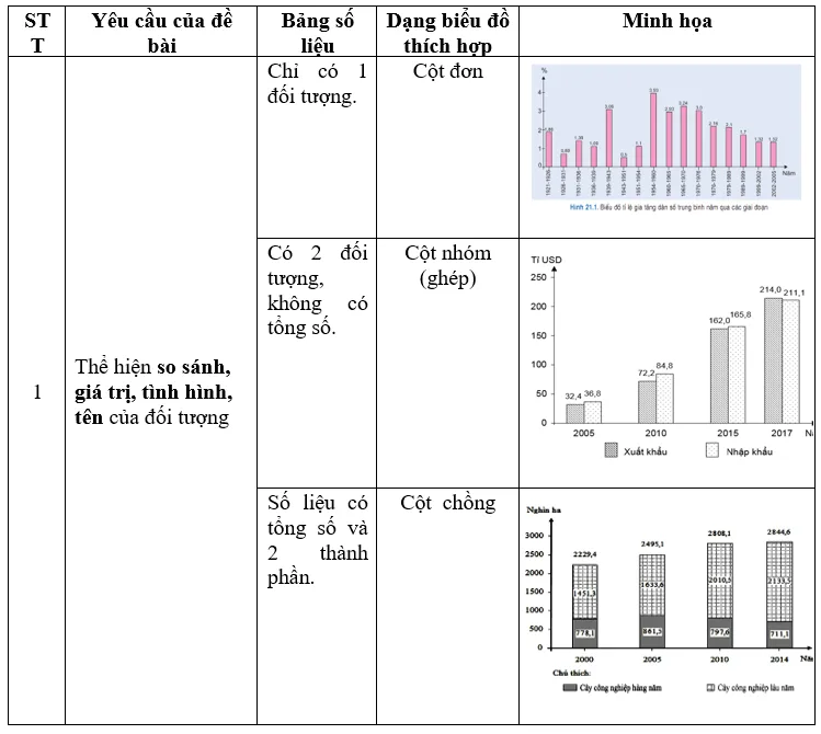 – BĐ so sánh giá trị, thể hiện độ lớn, tình hình của đối tượng: hình cột, kết hợp.