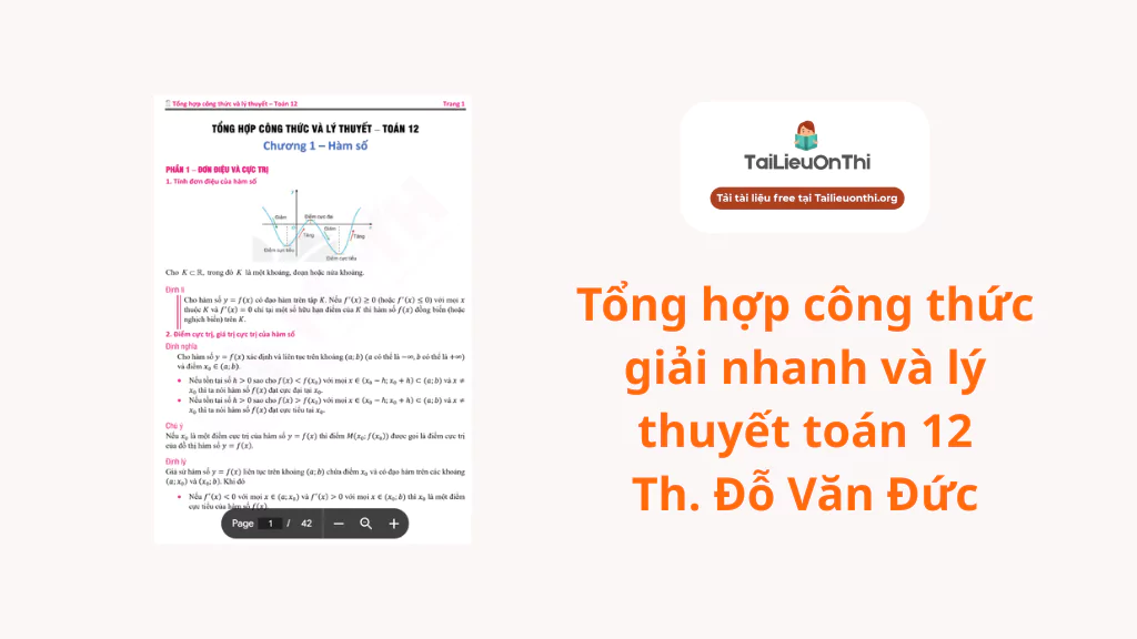 Tài liệu tổng hợp công thức giải nhanh và lý thuyết toán 12 của thầy Đỗ Văn Đức là tài liệu tổng hợp những kiến thức trọng tâm mà các bạn cần phải nắm chắc để đạt điểm tốt lớp 12 và kỳ thi tốt nghiệp trung học phổ thông