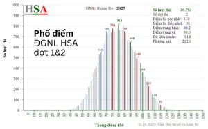 Phổ điểm thi ĐGNL HSA 2025 đợt 1 và đợt 2